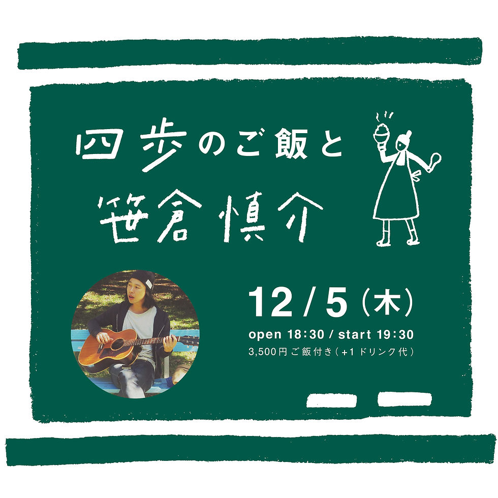 2019.12.5. 木|吉祥寺 四歩 「四歩のご飯と笹倉慎介」sasakurashinsuke2019年10月11日読了時間: 1分日時:2019年12月5日(木) OPEN 18:30 / START 19:30会場:四歩 東京都武蔵野市北町1−18−25地下料金:3,500円ご飯付き(+1ドリンク代)出演:笹倉慎介予約:予約フォーム